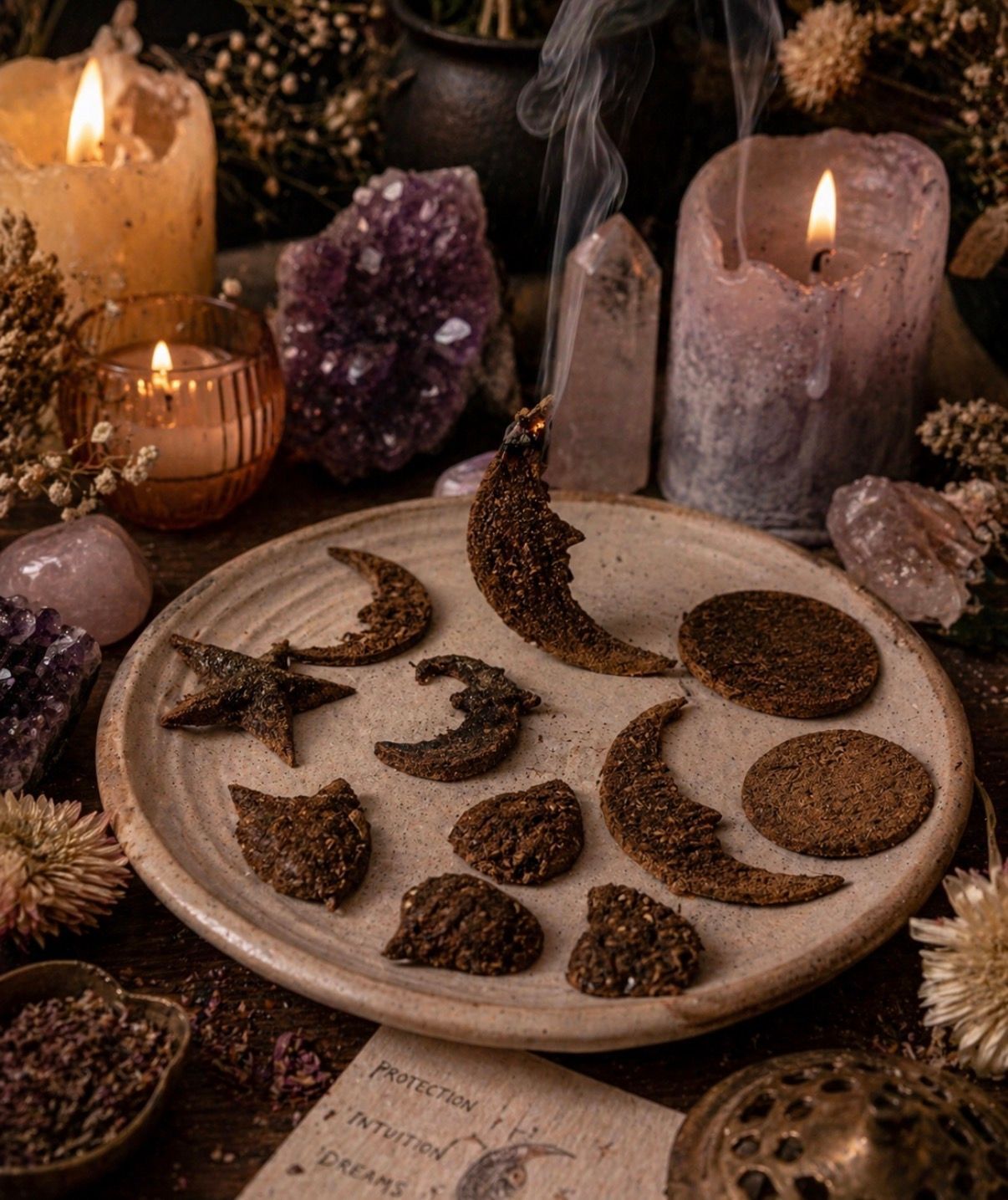 These aren’t your typical incense — they’re made to be seen, felt, and experienced. As they burn, the smoke rises softly, setting the tone for grounding, cleansing, and intention work.