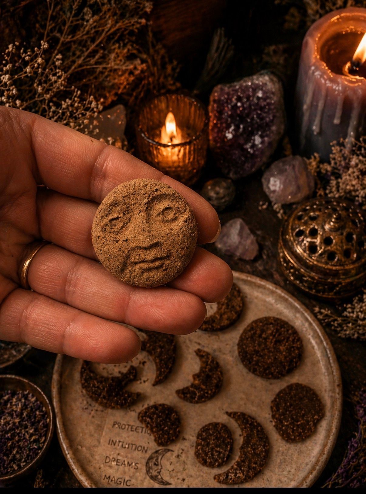 Handcrafted and intentionally shaped, each piece is designed to bring a deeper ritual experience into your space. From symbolic forms to nature-inspired designs, every shape holds its own energy while creating a beautiful, slow-burning atmosphere.